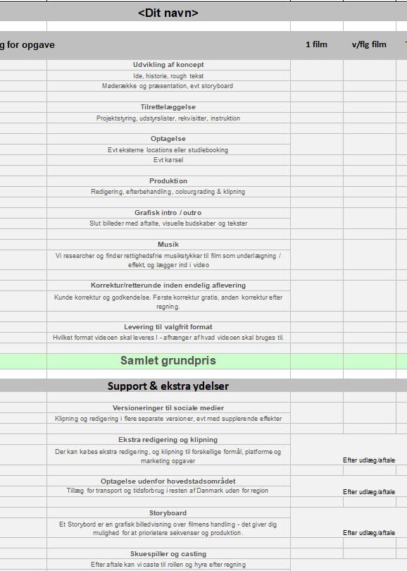Alle produktioner er efter tilbud, men beregnet omfang efter aftalt timepris